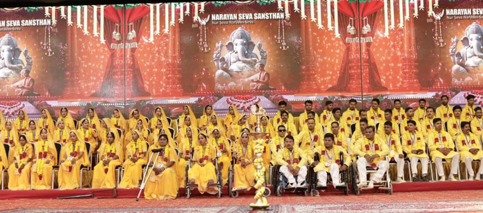 मानवता, करुणा और नए जीवन के सपनों से सराबोर वातावरण में नारायण सेवा संस्थान के सेवा महातीर्थ, लियों का गुड़ा परिसर में शनिवार को दो दिवसीय 45वां नि:शुल्क दिव्यांग एवं निर्धन युवक-युवतियों का सामूहिक विवाह समारोह श्रद्धा और उल्लास के साथ आरंभ हुआ। इस समारोह में 51 जोड़े सात फेरों के पवित्र बंधन में बंधेंगे, जिनमें 25 दिव्यांग और 26 सकलांग जोड़े शामिल हैं। देश के विभिन्न राज्यों से आए 700 से अधिक मेहमान इस मानवीय उत्सव के साक्षी बन रहे हैं।