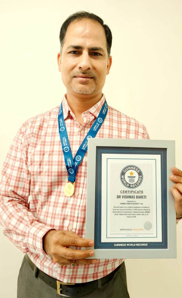डॉ. बाहेती ने स्वास्थ्य सेवा में कृत्रिम बुद्धिमत्ता पर आधारित एक लाइव स्ट्रीम में भाग लिया, जिसे यूट्यूब पर सबसे अधिक 17,999 दर्शकों ने देखा। इस उपलब्धि के लिए राष्ट्रीय चिकित्सा विज्ञान बोर्ड (एनबीईएमएस) और डॉ. अभिजात सेठ एवं डॉक्टर विश्वास बाहेती सहित सभी दर्शकों का नाम 25 फरवरी को दिल्ली में गिनीज बुक में दर्ज हुआ । डॉ. बाहेती ने बताया कि टेक्नोलॉजी आज के समय में मरीजों के लिए वरदान साबित हो रही है, इसके माध्यम से एक्स-रे, सीटी स्कैन, एमआरआई और अन्य मेडिकल रिपोर्ट्स का विश्लेषण एआई बेहद कम समय में कर लेता है, जिससे डॉक्टरों को सही निदान में सहायता मिलती है। कैंसर, हृदय रोग और न्यूरोलॉजिकल समस्याओं जैसी गंभीर बीमारियों का पता समय रहते लगने से मरीजों के उपचार की सफलता की संभावना बढ़ जाती है। इसके अलावा एआई आधारित मशीनें और सॉफ्टवेयर मरीज की स्वास्थ्य स्थिति पर लगातार नजर रख सकते हैं। इससे डॉक्टरों को मरीज की स्थिति में होने वाले बदलाव की तुरंत जानकारी मिल जाती है। अस्पतालों में एआई तकनीक से दवाओं की सही मात्रा तय करने, सर्जरी की योजना बनाने और मरीज की रिकवरी पर नजर रखने में भी मदद मिल रही है। ग्रामीण और दूरदराज क्षेत्रों में भी एआई आधारित टेलीमेडिसिन सेवाएं मरीजों के लिए बेहद उपयोगी साबित हो रही हैं। इसके माध्यम से मरीज घर बैठे विशेषज्ञ डॉक्टरों से परामर्श प्राप्त कर सकते हैं, जिससे समय और खर्च दोनों की बचत होती है। स्वास्थ्य विशेषज्ञों का मानना है कि आने वाले समय में एआई हेल्थकेयर क्षेत्र में और अधिक क्रांतिकारी बदलाव लाएगा, जिससे मरीजों को बेहतर, सुरक्षित और त्वरित उपचार उपलब्ध हो सकेगा।