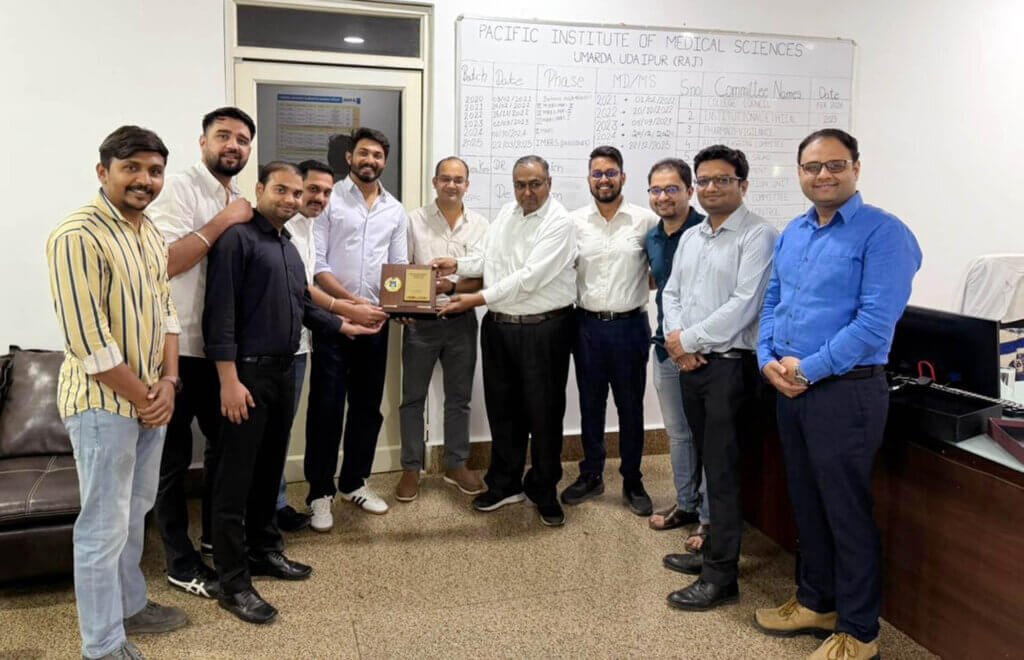 उदयपुर : पैसिफिक इंस्टीट्यूट ऑफ मेडिकल साइंसेज (पिम्स), उमरडा के ऑर्थोपेडिक रेजिडेंट्स ने प्रतिष्ठित “उदयपुर आर्थ्रोस्कोपी एंड आर्थ्रोप्लास्टी कॉन्फ्रेंस 2026” में आयोजित पोस्टग्रेजुएट (PG) क्विज़ प्रतियोगिता में प्रथम स्थान प्राप्त कर संस्थान का नाम गौरवान्वित किया। यह कार्यक्रम विंधम, उदयपुर में आयोजित किया गया था, जिसमें देशभर के विभिन्न मेडिकल संस्थानों के पीजी रेजिडेंट्स ने भाग लिया।