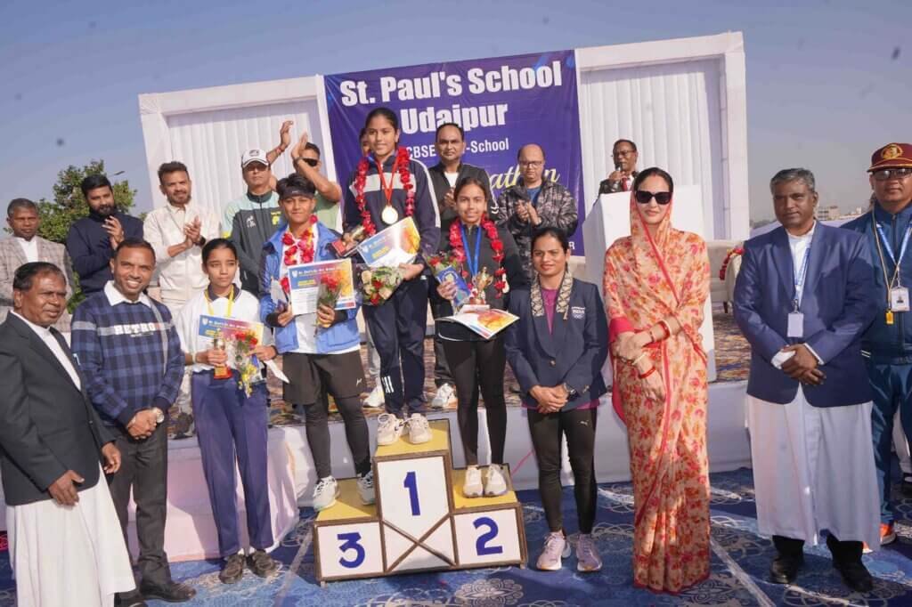 उदयपुर। संत पॉल स्कूल, उदयपुर के तत्वावधान में रविवार को सीबीएसई मिनी मैराथन का भव्य आयोजन किया गया। यह मैराथन महाकालेश्वर मंदिर से प्रातः 6.30 बजे प्रारंभ हुई जो फिश एक्वेरियम (फतहसागर पाल) पर सम्पन्न हुई। मैराथन में शहर के 23 विद्यालयों के सीबीएसई से सम्बद्ध कक्षा 9 से 12वीं तक के लगभग 1000 छात्र-छात्राओं ने हिसा लिया।