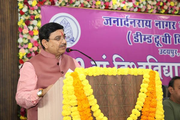 विशिष्ट अतिथि प्रो. कैलाश सोडाणी सलाहकार राज्यपाल उच्च शिक्षा ने स्थापना दिवस पर विद्यापीठ की विकास यात्रा, परंपरा और नवाचार अपनाने के लिए सराहना की। उन्होंने कहा कि युवा दिवस के मौके पर स्वामी विवेकानंद ने भारतीय संस्कार, ज्ञान और संस्कृति को पूरे विश्व के सामने रख कर राष्ट्र गौरव का प्रभाव सभी को दिखाया। प्रगति एवं परिवर्तन का आधार शिक्षा है। शिक्षा की साख ही है देश में शिक्षण संस्थानों की बढ़ती संख्या हमारी प्रगति का मार्ग प्रशस्त कर रही है। भारतीय ज्ञान और भारतीय इतिहास के साथ व्यवसायिक प्रतिस्पर्धा के मध्य भारतीय चिंतन और स्वास्थ्य परंपराओं को विद्यार्थियों और युवाओं तक पहुंचाने की आवश्यकता बताया।