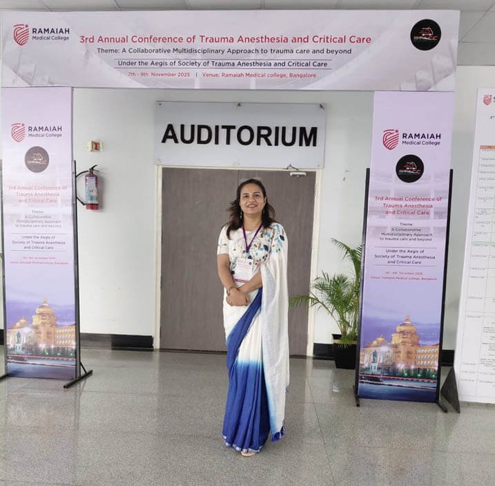 उदयपुर। गीतांजली मेडिकल कॉलेज एंड हॉस्पिटल, उदयपुर की डॉ. सविता चौधरी, प्रोफेसर एवं विभागाध्यक्ष – इमरजेंसी मेडिसिन, ने हाल ही में बेंगलुरु स्थित रामैया मेडिकल कॉलेज में आयोजित ट्रॉमा एनेस्थीसिया एंड क्रिटिकल केयर के वार्षिक सम्मेलन में दो महत्वपूर्ण व्याख्यान प्रस्तुत किए।